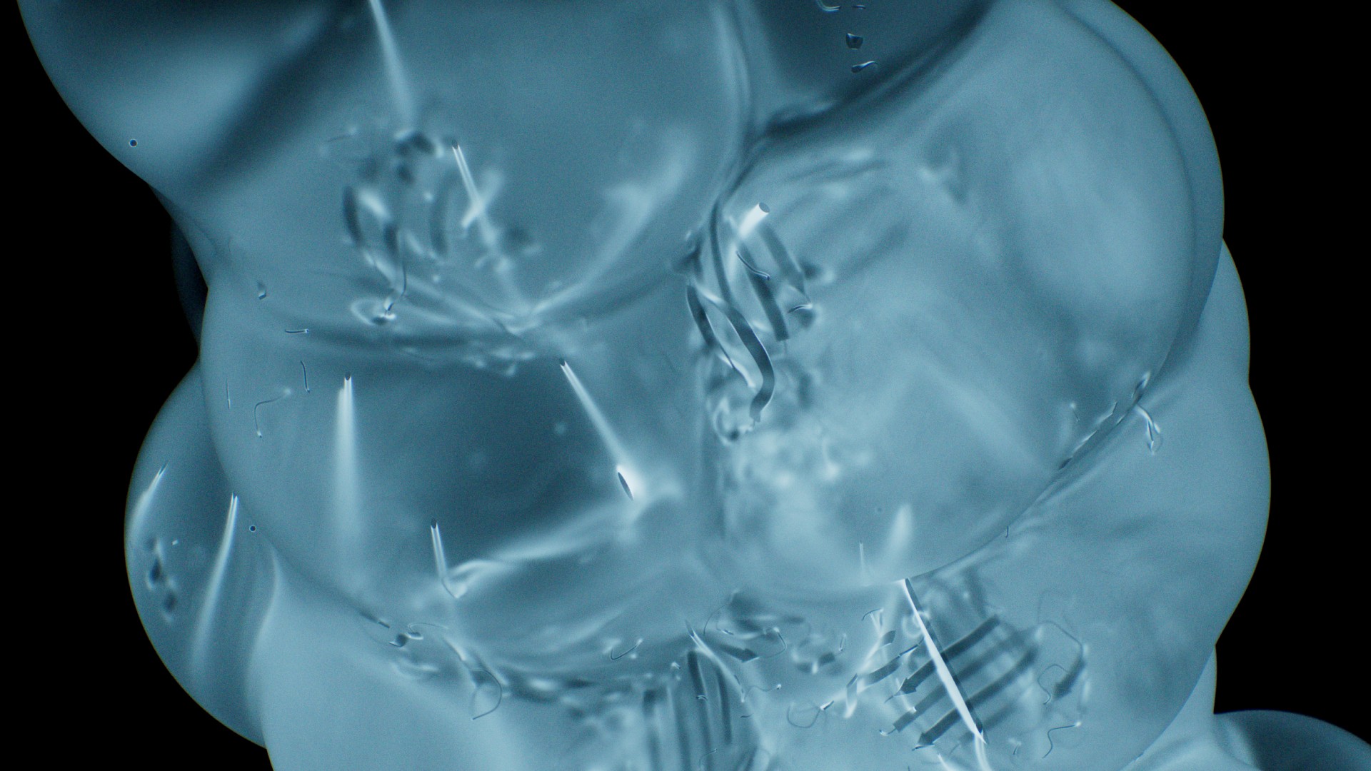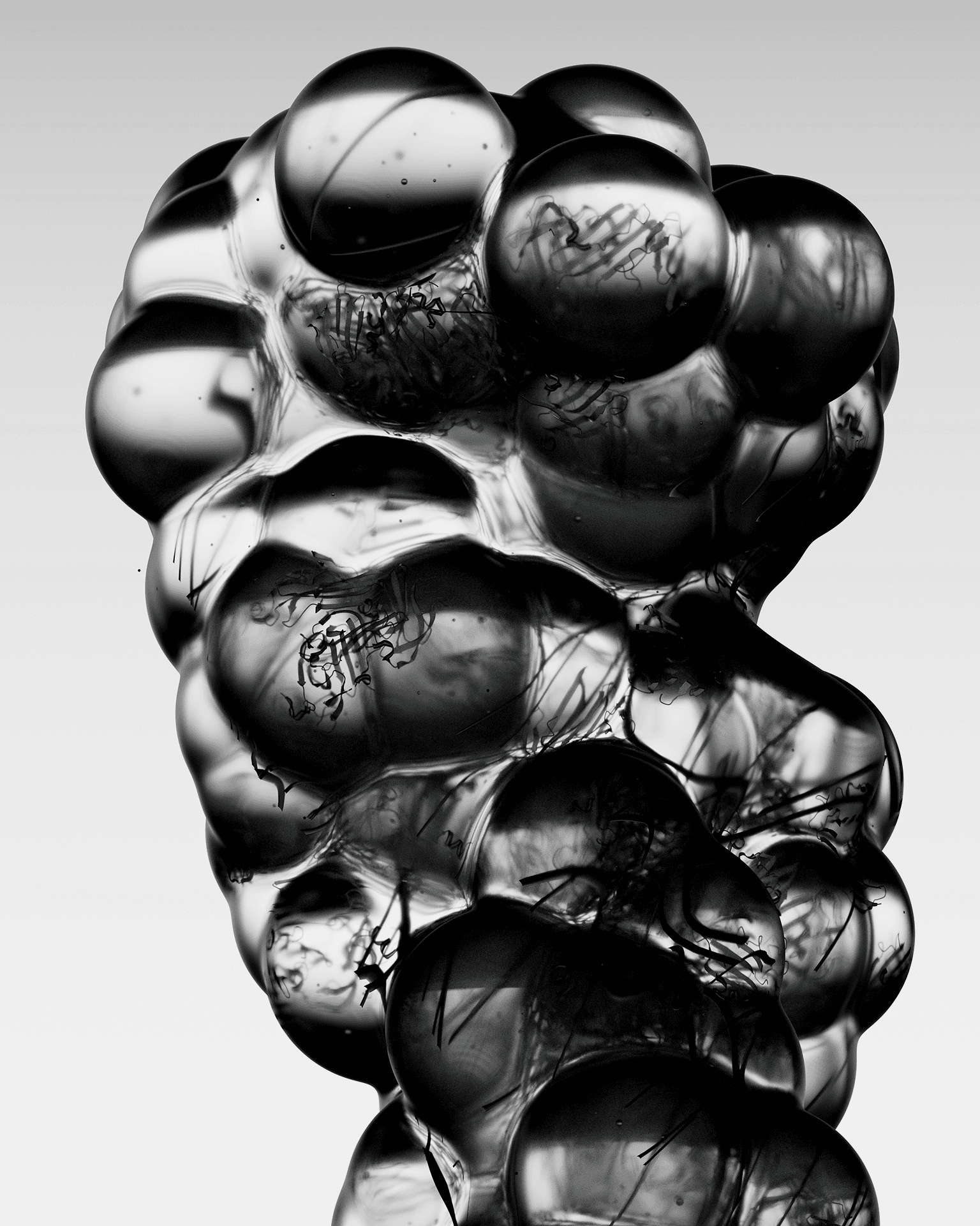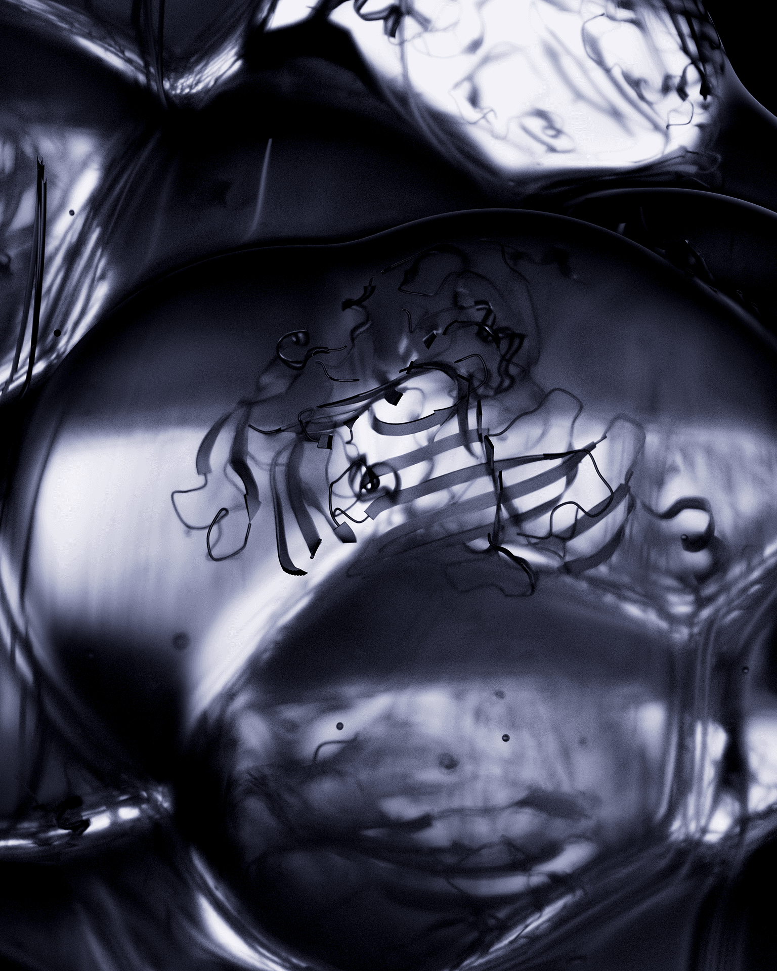 For Aetas, Culte Commun developed a series of hero CGI images visualising microscopic molecular and protein structures as large-scale, sensory objects. The art direction concept translates the invisible language of biochemistry, cell clusters, protein folding, molecular bonding, into images that sit at the intersection of scientific imaging and fine art photography. A single core form, a cluster of fused biomorphic spheres threaded with ribbon-like filament structures referencing protein secondary geometry, was rendered across three distinct material and colour states: liquid gold, chrome monochrome, and glacial blue. Each palette reframes the same object, from organic and vital, to forensic and documentary, to cold and clinical, allowing the campaign to communicate both the warmth of biological life and the precision of scientific process within a unified visual language.