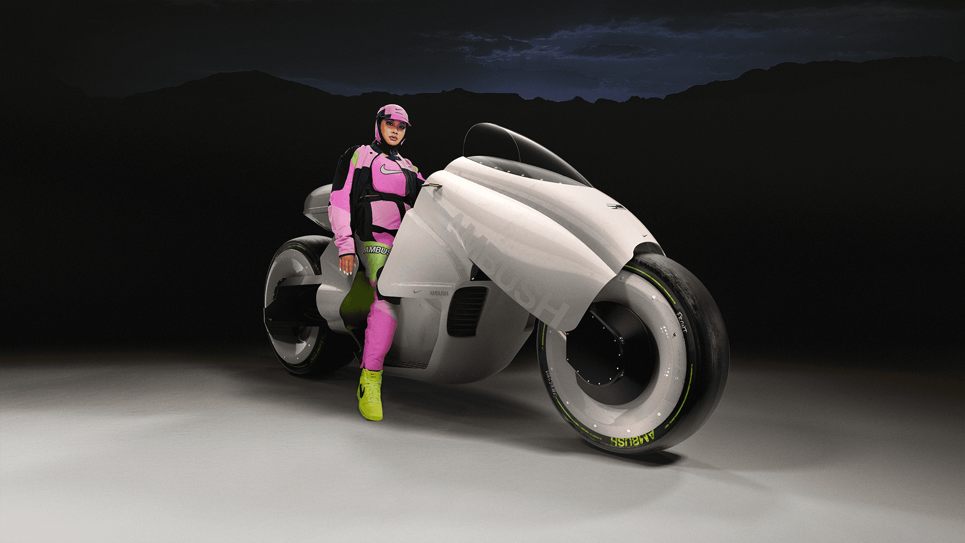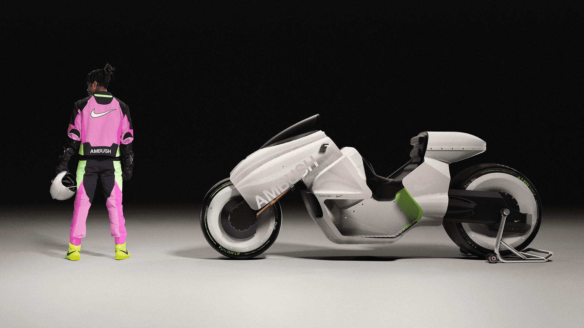 An Akira-inspired bike and a custom helmet were drawn and created by Services Généraux for the release of this Nike Ambush capsule collection. The shooting took place across Tokyo and Los Angeles.